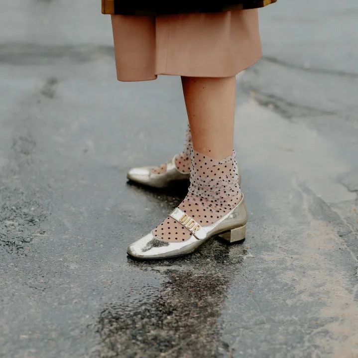 曾经一度被认为土的高跟鞋和袜子的搭配,早在秀场上就被正名了。但这个搭配想要在日常中穿的时髦,可以从袜子做出改变。抛掉厚重的棉质袜子,玻璃袜和高跟鞋更配哦。
