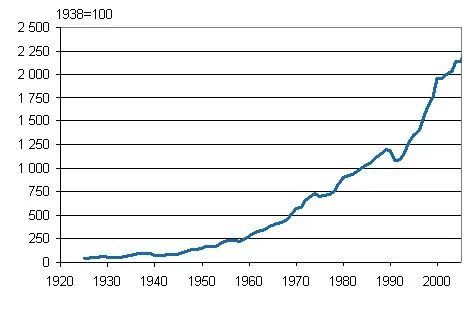 ▲1925-2006年芬兰工业产出量指数