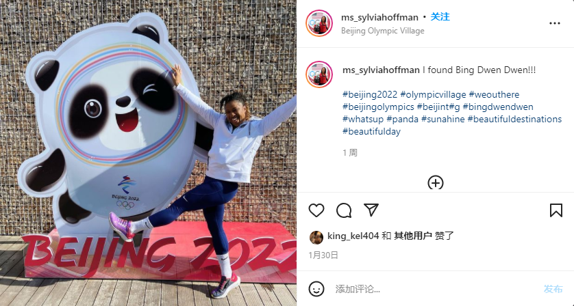 近日,各国运动员纷纷在社交媒体上晒出自己和冰墩墩的合影。美国雪车运动员西尔维娅·霍夫曼(Sylvia Hoffman)晒出一张照片,称“我找到冰墩墩了”。