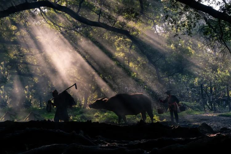 在专为拍照而生的霞浦,就连出租车司机都能跟你大谈构图技巧和光圈快门的参数。当过于粗粝的原生风光,无法满足日益增长的出图需求时,放网的渔民、牵牛的农夫、挑担的阿婆,甚至于静默不言的牲畜、配合丁达尔效应的烟雾,都会积极扮演起道具,主动融入布景。
