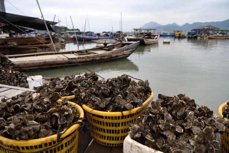 △福建宁德霞浦,几筐收获的海蛎。/图虫