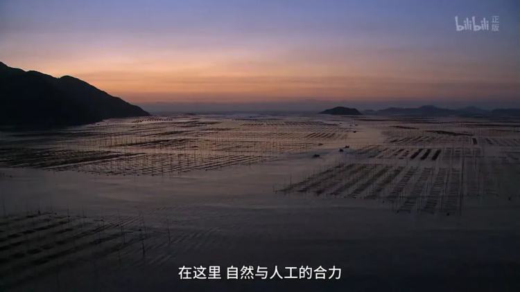 比如“时间的味道”那集,福建沿海种植紫菜的热闹场面出镜,旁白适时响起:“在阳光的折射下,散金碎玉一般闪耀的海面上,影影绰绰的毛竹和棚架之间,游动着船帆与人影。”