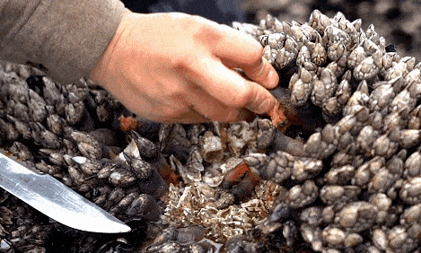 藤壶是一种以浮游生物为食的节肢动物,常聚集在有海浪冲刷的礁石上。为了获取个头最大肉质肥厚的藤壶,渔民们会赶往距离陆地几十海里的岛礁上,抓住退潮之后、涨潮之前的短短两三个小时进行采摘。