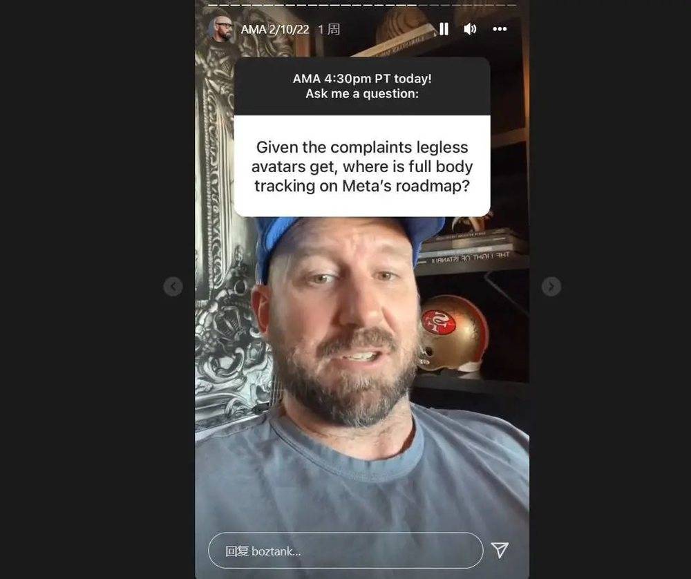Andrew Bosworth 是 Meta 的 Reality Labs 副总裁,在领导公司的 XR 部门时,他养成了通过 Instagram 进行即兴问答的习惯。在 2 月 10 日的问答中,他承认加腿是件难事。