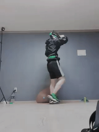 为了在 VR 中完成全身舞蹈动作,韩国 VRChat 舞者 Makoto 用的追踪器特别齐全:带有无线附加组件的 HTC Vive 头显、手腕上的 Index 控制器以及腰部和脚部的 Vive Tracker。