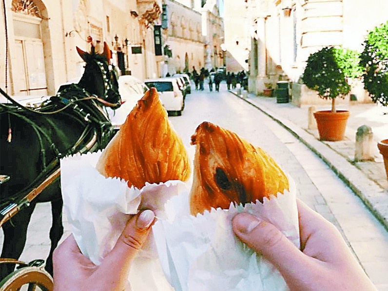 帕斯蒂兹有大有小,小的一两口就可以吞下,大的两个就能装一盘。不论大小和形状,一个新烤出来的热气腾腾的帕斯蒂兹总会给马耳他人带来全方位的满足感,一口下去,酥皮伴着浓香的馅料,整个人瞬间被温暖和幸福感包围。可以说,不论男女老少,没有哪个马耳他人对帕斯蒂兹有“免疫力”。