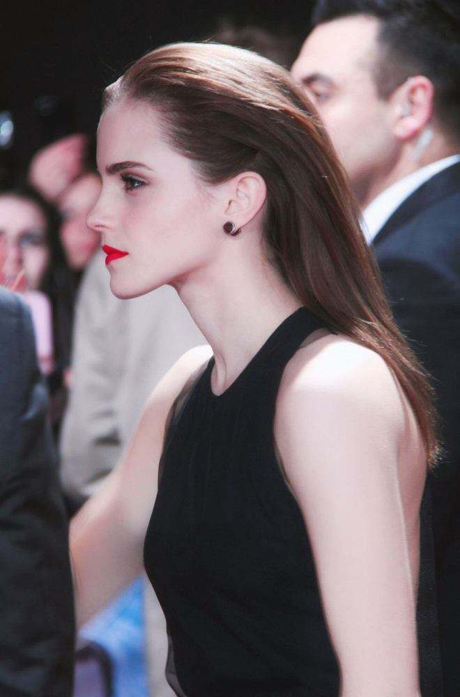 其实,艾玛原来也做过这样的贴头皮发型,她的颅顶高、头型圆润、五官精致,完全hold得住这样的“精英造型”。