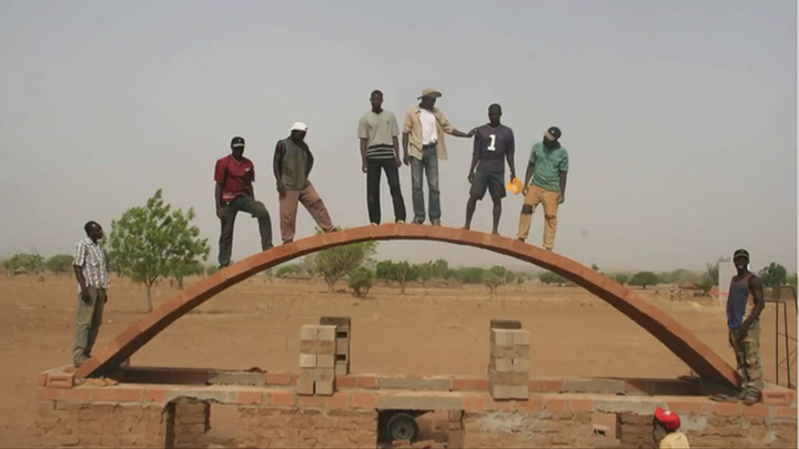 为了建造一个特别的粘土制拱顶,凯雷先生和自己的团队直接跳到事先搭建的样本上,用行动告诉那些目瞪眼呆的村民——「拱顶能够支撑我们的重量」。看着拱顶坚固不倒的样子,村民这才答应开工。