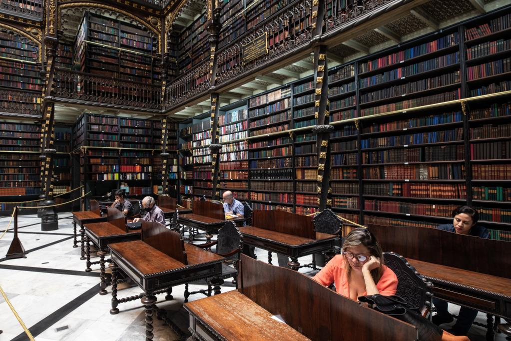 4月19日,在巴西里约热内卢,人们在皇家葡文图书馆内阅读。