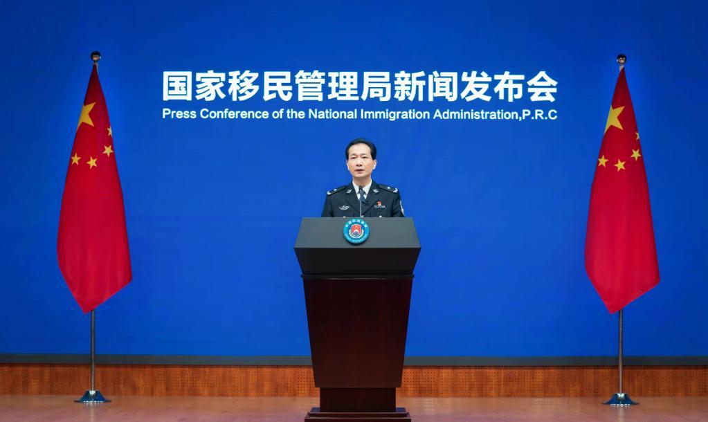国家移民管理局新闻发言人、政策法规司司长陈杰在介绍相关情况。(国家移民管理局供图)